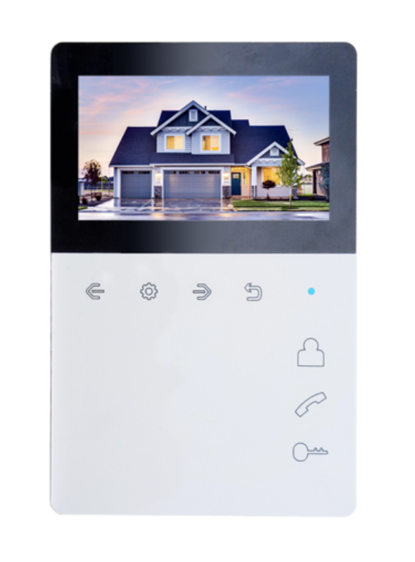 Elly - Монитор видеодомофона 4,3 дюйма, TFT LCD, hands free. Возможности подключения: 4 монитора, 2 вызывные панели, 2 видеокамеры. Адресный интерком, 25 мелодий. Питание 220 В.